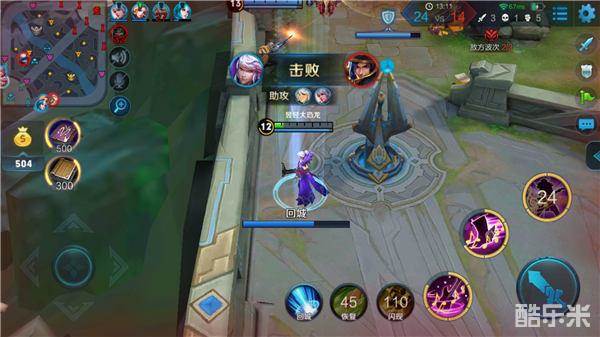 搭配高渐离标配装备辉月主动技能的无敌效果,到达目标位置立刻开启辉月,可在无敌状态下持续造成伤害,即使无法击杀残血,也保证了自身生存,为团战提供最大优势。