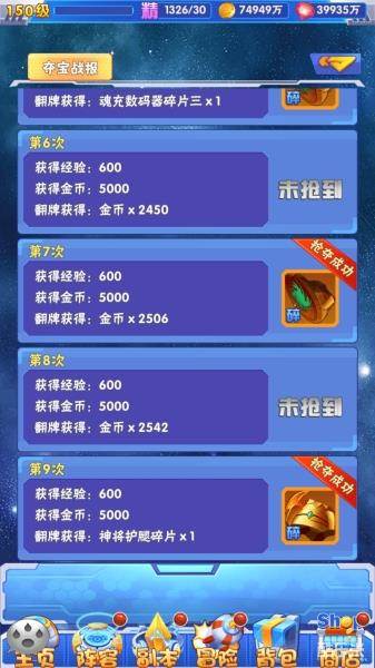 当你看到别人有相应的宝具碎片时,在战斗胜利后,就可以进行翻牌抽奖,从3张牌中抽取1张获得奖励,奖励的内容包括先士、各种丹药、装备和术师碎片等。要是这次没获得到,那就再多打几次。各位驯兽师们达到一定等级或者VIP等级,即可开启五连夺宝和一键夺宝,这样只需轻轻一点即可获得完整的宝物。