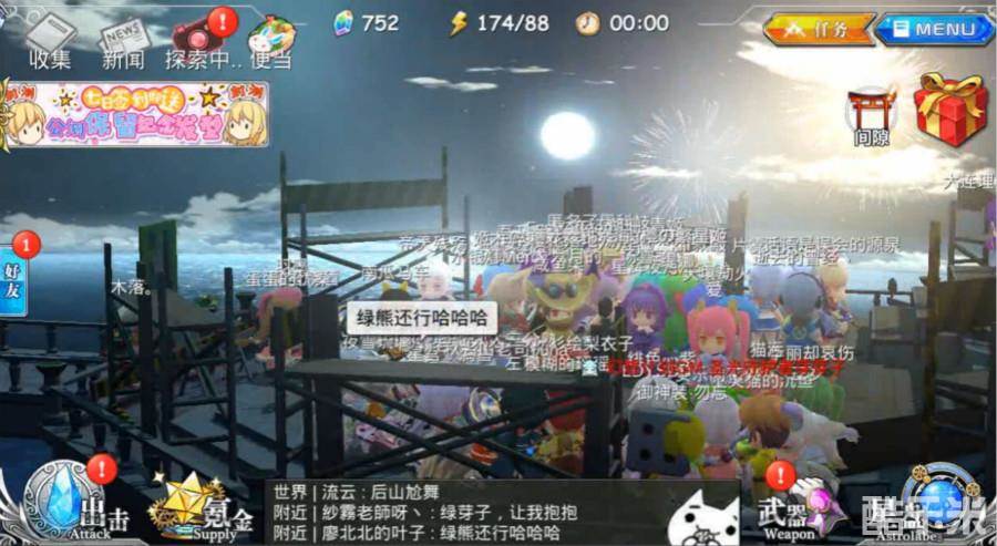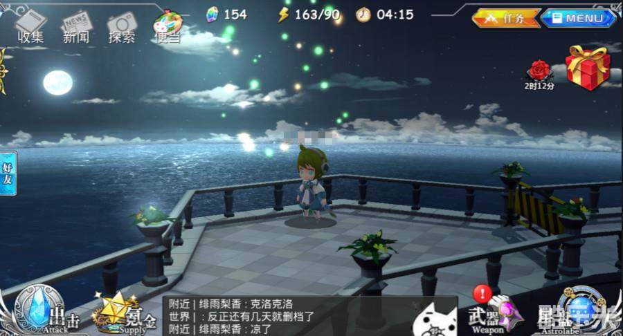但是在《幻想计划》里,抽到的灵武老婆们平时并看不到,而是以真正的武器形态出现在玩家身边。正是因为这个,所以在这款游戏里,与其说重点是培养卡牌,不如说重点是怎么更好地“玩自己”。尽管我们拥有的是一个三头身又平胸的Q版形象,但好玩的仍然不少。闲来无事,可以去Richard老师那里做个造型,什么原谅绿基佬紫,或者想做一回女装大佬,都可以轻松驾驭;偶尔约上三两基友,赏月看花,还能放放小烟火,还不是美滋滋;如果人多,还可以在沙滩或者喷泉旁边来一支尽兴的广场舞,我就是人群中最闪亮的那颗星。