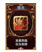 魔帝坐骑,激活后加成 基础法防+30%生命+1200,需卡牌魔龙
