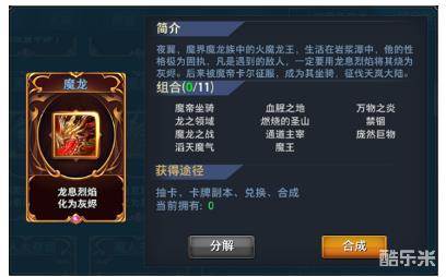 魔王,激活后加成 基础法防+60% 火攻击+20,需卡牌魔龙、邪炎魔使