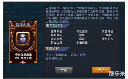 堕落天使,激活后加成 基础物防+30%生命+1200,需卡牌堕落天使