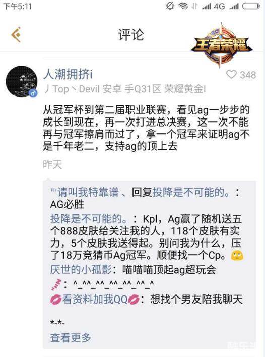 可见7月8日这场决赛,关乎着这位小伙子后半生的幸福生活,或许AG超玩会夺冠之时便无意间促成一段姻缘,加油AG超玩会!