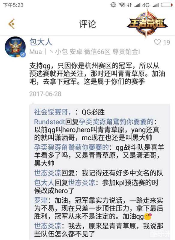 这位名为“包大人”的网友评论道:“支持QGhappy,从预选赛就开始关注,加油,拿下冠军!”