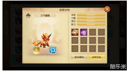 3)其它上阵宠物可为出战宠物提供资质属性加成,上阵宠物资质属性越高,则附加给出战宠物的资质加成越多