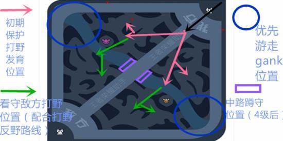 当前版本中,射手生存堪忧,几乎不会选择,鬼谷子一般跟随打野来打控制带节奏。根据打野选择打红,打蓝或者反红,反蓝,鬼谷子在保证打野前期经济发育的同时,可去敌方野区观察其优先打红buff还是蓝buff,配合边路英雄来反蓝反红(守蓝守红)。鬼谷子一级点二技能的团控压制力较强,只要拉到敌人就能迅速配合队友将其秒掉,只要鬼谷子在野区附近,敌人一定会有所后撤避免一级团,这样以保证打野经济资源不会丢失。前期(4级前)尽量不要去中路gank,毕竟法师很需要快速到4的能力提升,除非敌方中路过于压进,可配合打野中单联合将其留住击杀。前期多去寻找双边路战士,等待其过于激进出塔再配合打野来gank。