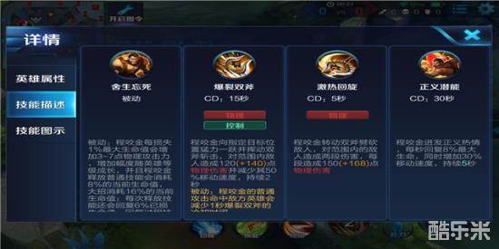 解析:叔叔我是一个不怕死的人,因为只有在危险的境遇才能发挥出我的全部实力。我每损失1%的血量,就会增加我的物理攻击力,所以千万不要小看血量低的我,伤害可是要爆表的。我在使用技能的时候会损失我的生命值,大招损失16%,一、二技能损失8%,毕竟老天是公平的,给我加了攻击就一定要给我点伤害。