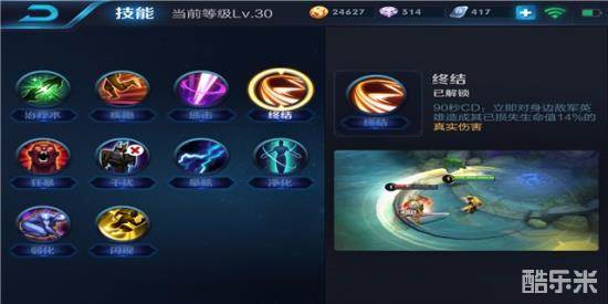 叔叔我有着加血的技能,也有位移的技能,可是没有强硬的控制技能,只有一个软控制技能,因此叔叔我留人能力是比较弱的,而本叔叔又是一个喜欢慢慢磨人的英雄,所以在召唤师技能方面选择终结,可以快速的收掉敌方英雄的人头,防止敌方英雄逃脱,以免夜长梦多。