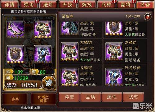 正式因为技能“舍命救主”的存在,太史慈在攻击方面十分出色所以在装备搭配方面,主公们无需为其穿戴增加攻击的装备(刀、枪),可以为他穿戴增加攻击速度的弓箭,或者增加生命的盾牌等防御装备,让他可以在战场上生存的更久。从而使太史慈长久的立于战场之上持续对敌人造成伤害。