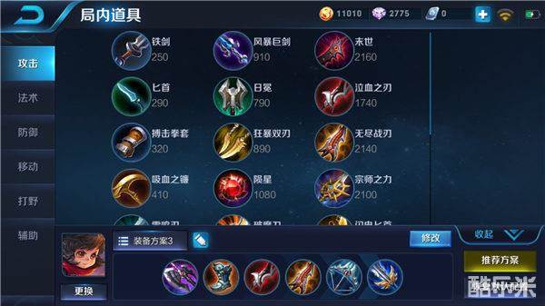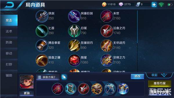 推荐出装二:暗影战斧+急速战靴+泣血之刃+无尽战刃+破甲弓+破军