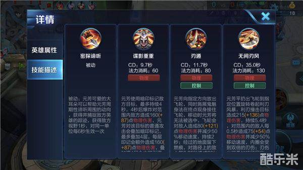 被动技能——密探谛听:被动技能让李元芳拥有很强的侦查能力,使得李元芳能够提前察觉到附近敌人的动向,是李元芳战场生存的重要保障。