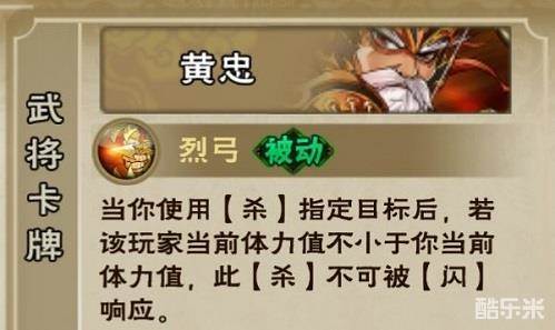 PS:由于黄忠只有三点体力上限回合外最好留一个看破作为防身,副手武将很重要,推荐使用较强的防御力或者能收残局的武将即可