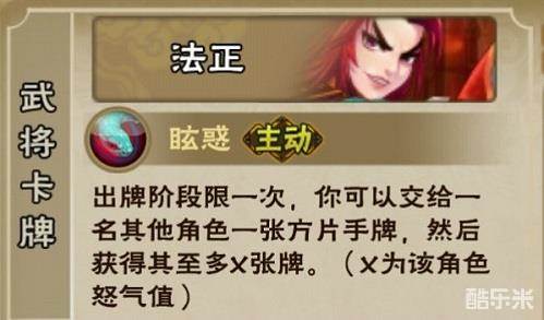 法正作为1.0.6版本新出武将之一,入人眼帘的是他独特的技能,既不是卖血流,也不是防御流,谈不上强杀流,更不是限制流,唯一沾边的就是拆迁流还要取决于目标武将的怒气值!