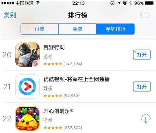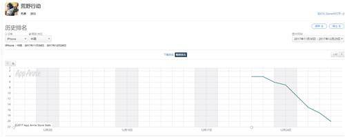 除此之外,一度被捧上天的《荒野行动》,从前阵子AppStore畅销榜从第3的位置一路俯冲,如今已经跌落到了20名左右,而从趋势上看,还有继续下滑的可能。