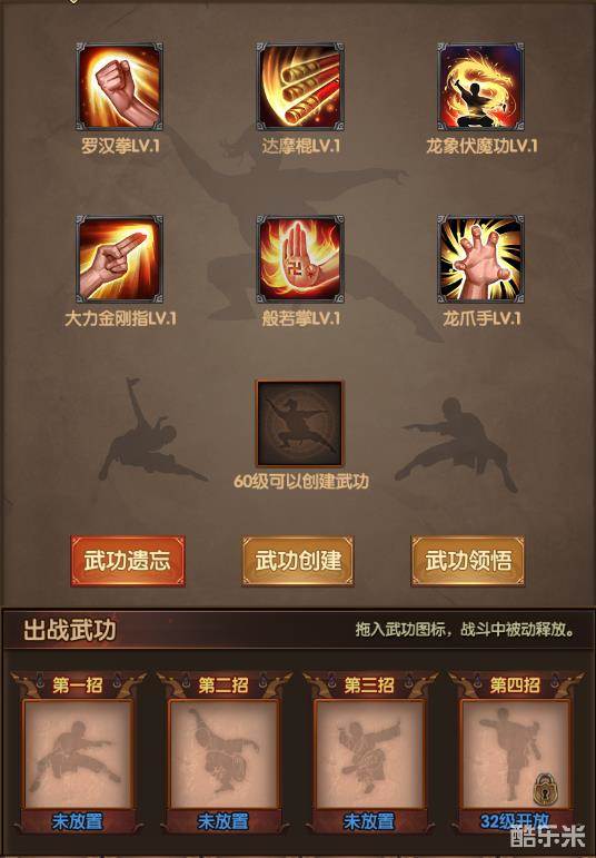 每种武学都可以激活其他武功的缘分,只要学习不需上阵即可激活。江湖武学升级不同于门派武功,升级时仍需要对应武功的秘籍。每个玩家根据不同等级最多可上阵4个江湖武学,江湖武学的释放不存在顺序,都为概率释放。