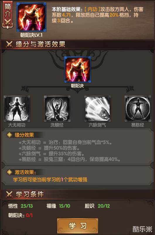 (3)绝世内功共有8种,威力最强,同时学习和获取难度也最高。