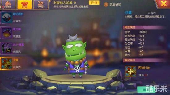 有了唐僧,孙悟空,怎么能没有沙僧呢。这个平时默默无闻,忍气吞声的“老好人”呆贼名副其实。该时装最大特色,就是束腰的骷髅装饰,其与呆贼锋利的尖牙形成鲜明对比,仿佛一尊杀神矗立其中,让人望而生畏,只可远观而不可亵玩焉。当然,呆贼的实力也不容小觑,正如沙僧一样,关键时刻,他也能成为独当一面的杀戮机器。