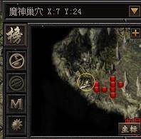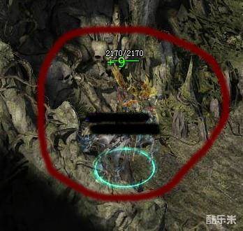 这时我们可以站在附图中的那个位置,也就是BOSS的里面,这样就不会受到小怪的围攻,当然,被两三只小怪打中还是会有的。