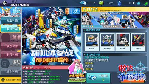 《敢达争锋对决》在2018年的元旦之际推出了诸多的活动,首先以升星哈罗礼包和补给返点为开端,掀开了一阵充值的热潮。同时一举实装了2台全新的机体,并让能天使高达、高达F91两台新机体为首,加上之前的稀有机体托鲁基斯、迅雷高达开启了高倍率抽取活动,连同刹那等4名机师的高倍率抽取,人气的角色的配信受到了玩家的热烈追捧。在其中最为抢眼的,就是进入新卡池的GN-001能天使高达。不需要额外氪金,只需要使用机体补给卡就能在卡池中抽选,高于常规机体的大倍率掉落还是相当福利的呢。