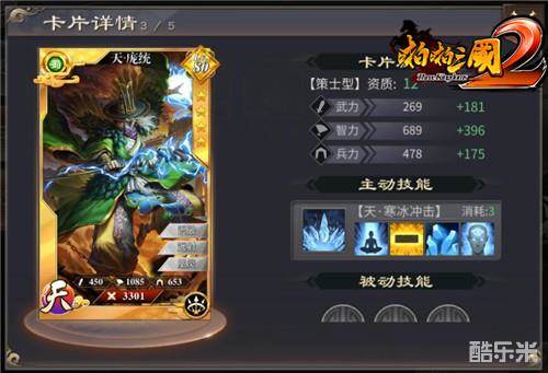 庞统,刘备帐下重要谋士,与诸葛亮同拜为军师中郎将。在游戏中,庞统同为策士型武将,大招“寒冰冲击”可召唤冰刺从天而降,攻击距离最近的敌方部队,造成法术伤害。与刘备、张飞等武将联协,可产生额外加成。
