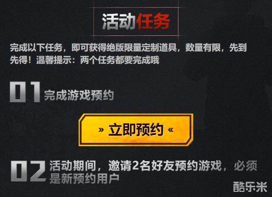今日,全军出击官网上线了“邀好友一起拿绝版限量道具”的预约活动。玩家只需在官网预约,并邀请两名好友成功预约游戏,即有机会获得游戏金币,限量元旦T恤,衣帽周边等礼品奖励。活动只在2018年1月1日至1月5日开启,限量好礼,过时不候!