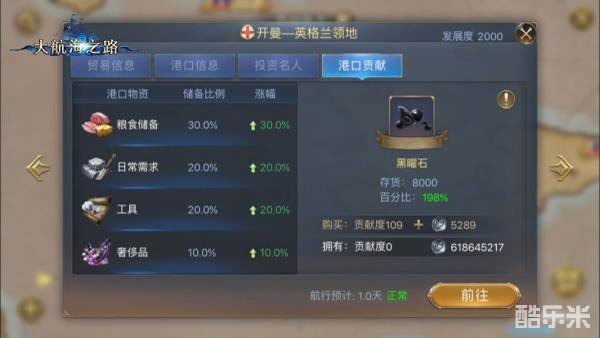 贡献度获得:在开拓港贸易卖出货物时可以增加自身贡献度,还有概率触发总督感谢事件-获得100000港口贡献度。