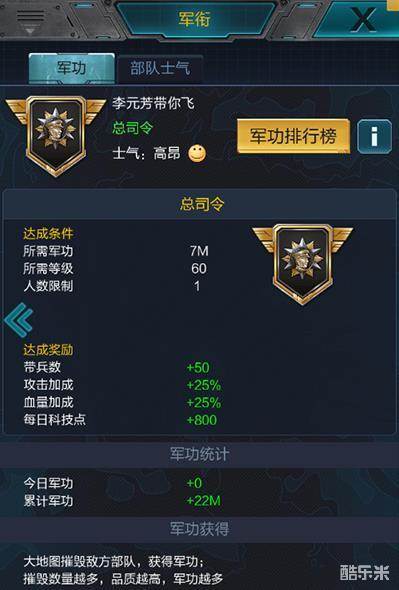 4.部分军衔有人数限制,军功排名靠前的玩家获得该军衔