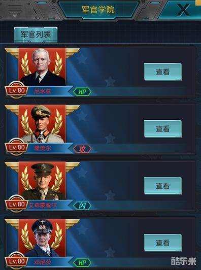 1.点击军官学院进入军官学院界面,可查看军官列表