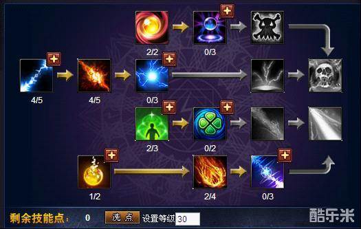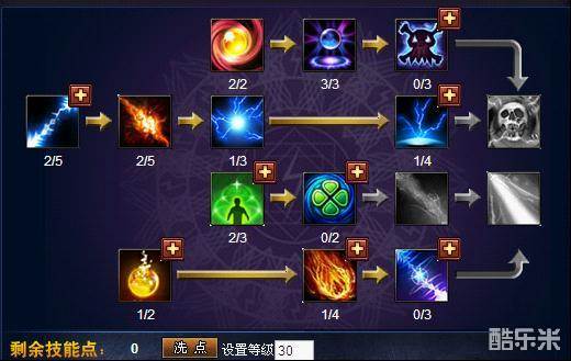 这个是30级的系统推荐加点。出1鸣累打世界BOSS有用,不过需要前置技能奥义-狂雷闪击 消耗80怒气的,有点浪费。出1陨石,双群,刷本刷迷宫效率高。加血2级出QTE。加怒气和加伤害点满。不推荐。