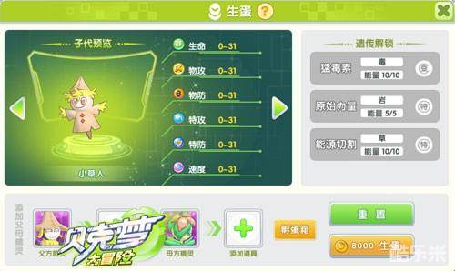 3、子代的样子可以在子代预览界面看到,而个体值属性预览也可以看到大致范围。生命、物攻、物防、特攻、特防、速度这些均可以看到。