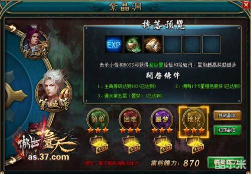 只要有足够的体力,紫晶洞副本可以无限次挑战,每次都可以获得经验及其他奖励,奖励多少根据副本层次和难度决定,当然还有通关的星级也能影响奖励。