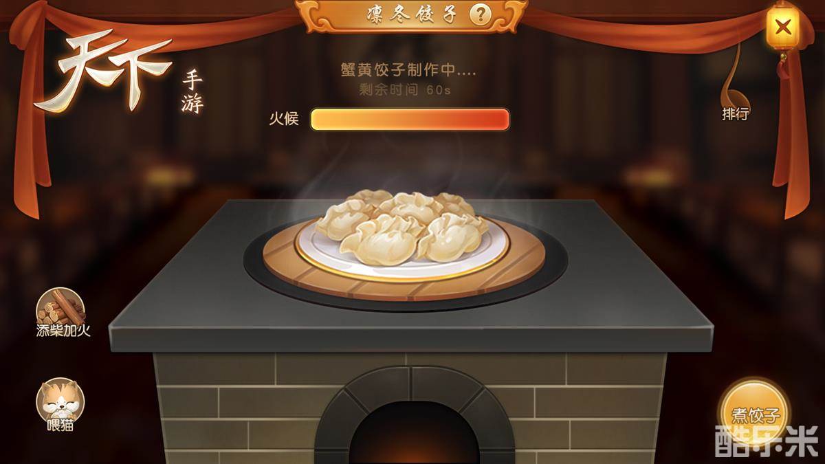 在中华民俗中,“饺子宴”是任何山珍海味所无法替代的重头大宴,热气腾腾的饺子最能体现中国年味。今天,《天下》手游凛冬祭第一重全民礼宴“饺子宴”惊喜来袭,截止到1月10日,每日晚上18:00-22:00,大荒子民一起包饺子、煮饺子、吃饺子,少侠分享饺子即有机会获得高额军资福利! 每锅15个饺子会有2个福运饺子,一口咬开,雷钻、残页、大禹随运来!少侠,快来加入热热闹闹的饺子宴吧!
