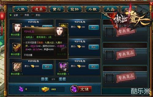 玩家在充值以后获得了一定的VIP等级,有了这个VIP大家在《傲世九重天》应该如鱼得水,在游戏前期,除了体验各种VIP给我们带来的方便以外,还有礼包奖励,充值三百到五百可以领到橙色的乌倩倩,前期较强力的法术攻击类豪侠,大家在获得后只要使用经验丹升级就行了,要知道豪侠的培养难的并不是升级,而是进阶,橙色的豪侠虽然获得的时候是一级,但是我们培养起来就会得心应手。