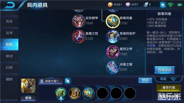 中后期装备推荐:救赎之翼、疾步之靴、极寒风暴