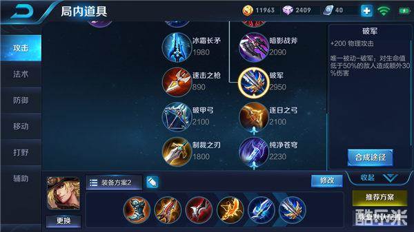 急速战靴+无尽战刃+泣血之刃+闪电匕首+名刀·司命+破军