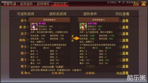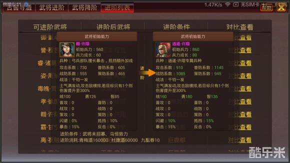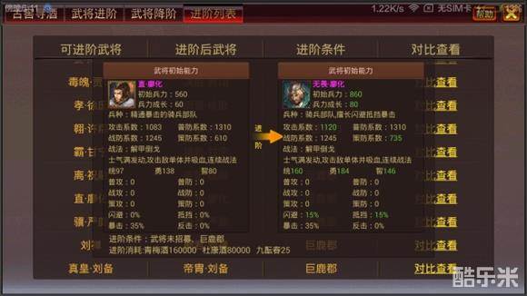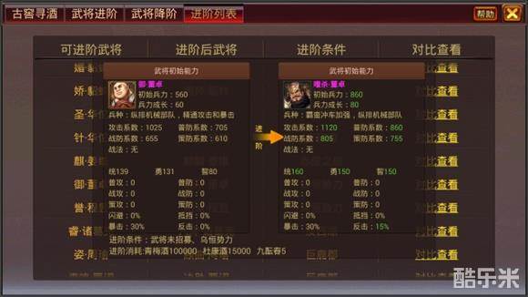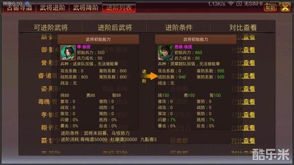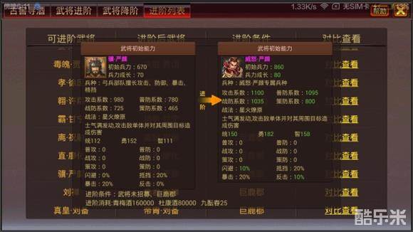 《风云天下OL》3.3版本武将进阶-武将对照列表