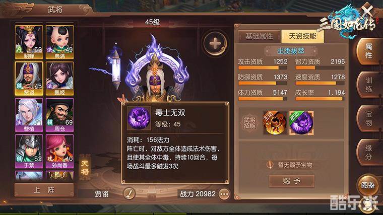 第二套阵容则是降低对手防御,配合毒伤及法系群攻进行消耗,尤其适合在本次门派调整中获得加强的幽冥。阵容以贾诩、祝融为核心,搭配法系群攻(曹操、大乔)或辅助武将(孙权、小乔、蔡文姬、司马懿),幽冥及祝融的技能首先降低地方双防和回复效果,同时幽冥、祝融以及贾诩的被动技能都将给对手带来持续的法术伤害,配合群攻武将的法系输出,能够给对手带来巨额伤害。