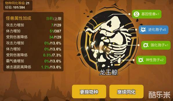 10.每种增益都可以累加,但都有上限,上限与物种同化等级相关(最高LV99)。