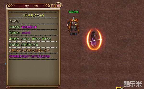 《武尊》中玩家追名逐利的争夺则主要在武林争霸系统中进行,这一每天13:00~14:00开启的战斗将十分直白地显示出谁的实力更胜一筹。等级达到45级的玩家可以报名参战,13:00~13:10为报名时间,玩家进入武林争霸大厅,但不能进行PK,13:10~14:00为正式战斗时间,玩家可以自由PK。这一玩法的主要特色在于,当玩家进入武林争霸大厅之后,将屏蔽一切人物信息,人物外观也将统一。也即是说,玩家选择对手时并不会知道他究竟是谁,比自己强还是比自己弱。充满神秘感的对手,有没有燃起你的好战之魂?