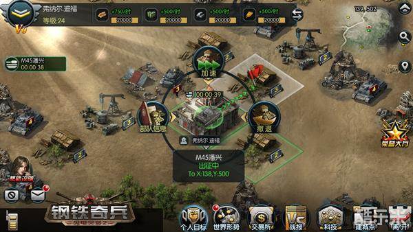《钢铁奇兵》还别出心裁的为玩家和军事迷带来了庞大的世界远征系统。玩家可以自主选择联盟阵营出征占领郊野资源,并协防驻扎。从单兵作战到联盟之间的资源大战,玩家间的胶着不再局限于寸土寸地的争夺,而是兼具全球视野和团队精神,以征服全世界为目标,大大丰富了游戏的世界观。虽然远征的脚步决定着整个战局的走向,但基地防御等细节也是成败的关键,只有真正的天才指挥官才能脱颖而出哦!