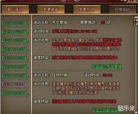 在武尊中能够获得顶级装备的地方实在是太稀有了,特别是在新服之中,如果能抢先获得顶级的装备那么对于玩家今后的砍怪厮杀有着十分重要的作用哦,在武尊开服一天后的22:15分开始的死亡禁地正好就是能为玩家提供极品装备的地方。