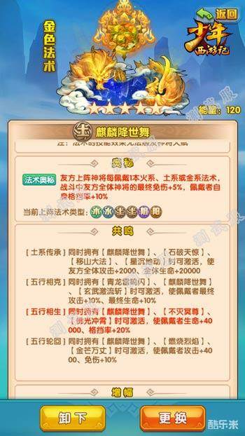 除了清除负面状态和强大的攻守技能,金色法术“麒麟降世舞”还能为佩戴者提供大量的属性加成。开启专属法术共鸣后,玩家可通过搭配指定五行法术书,百分比增强佩戴神将的格挡率、生命等,增强阵容的整体实力。