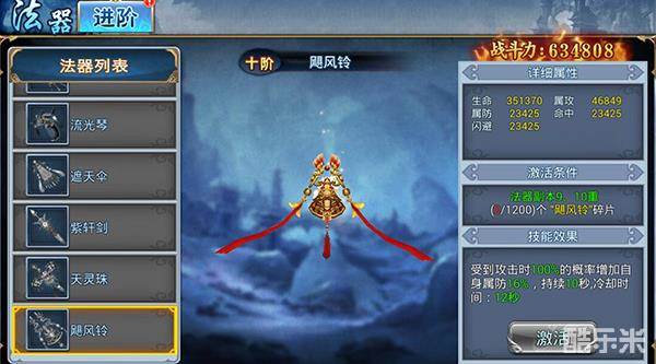 飓风铃增加闪避属性,同时技能增加属防,基本算是防御型的法器,防御型法器比较被动,但是在面对强攻的时候非常有效,毕竟活着才有输出!