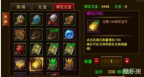 不想充值的玩家也可以使用系统赠送的绑定元宝购买魂石喔!