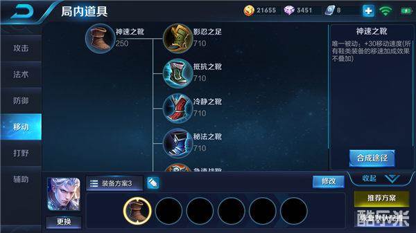 解析:铠前期作战能力较弱,很少有与敌军英雄作战的机会,因此不必优先选择增加物理攻击的装备,以达到节省资源的目的,且较小程度的物理攻击属性差异不会影响到作战;而若选择装备神速之靴,则可很大程度上的提高铠的移速,进而强化了铠的抗压能力,不易遭到敌军英雄的抑制经济,且移速的增加会加快铠的支援速度,使得铠不至于错过重要的团战。