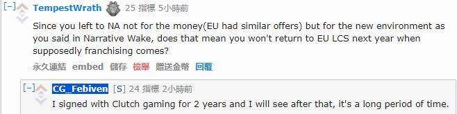 A:我和Clutch Gaming签了两年的合同,届时我会再看情况,还有一段时间呢。