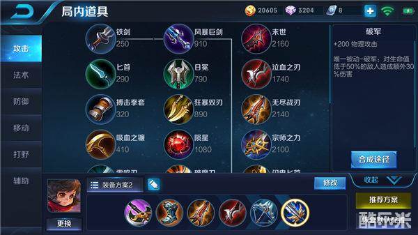 巡守利斧+急速战靴+无尽战刃+泣血之刃+破甲弓+破军