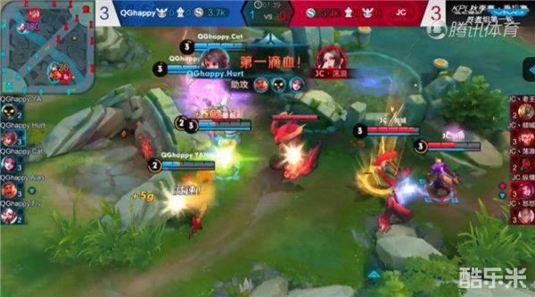 比赛进行到一分多钟的时候,红色方多名英雄又集体去反红,上路的曹操见状赶紧前往支援,并释放一技能加快支援的速度。百里玄策的二技能命中了野怪时却误以为命中了敌方英雄,在突进的时候反而受到了重创。而不知火舞在突进人群打出控制和伤害的时候被太乙真人的一技能所眩晕,接着便被李元芳秒杀。红色方状态较好的哪吒进场成功击杀了太乙真人并辅助队友击杀了苏烈。红色方在取得优势后还选择继续突进,却被貂蝉使用一技能成功消耗,这时候鬼谷子和百里玄策均已是大残,李元芳趁势追击并将其击杀。赶到支援的曹操直接拦住了哪吒的追击,掩护李元芳顺利撤退。接着曹操使用一技能追击并用二技能成功将哪吒击杀,收拾了残局。