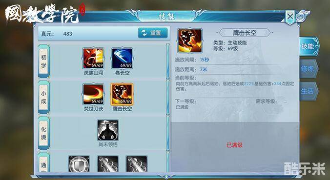 槐院的鹰击长空,技能CD15秒,释放距离7米,向前方高高跃起,落地后造成222%基础伤害+344点固定伤害。