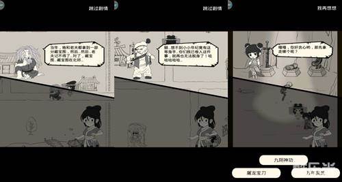 从疯老头口中得知北郊的树下埋有宝藏。往北走遇到一个拦路人(806血量,记得加血之后再打);打败他后进入北郊,点击左边的大树触发剧情;落入地下后首先调查骸骨,获得藏宝图碎片和金手镯,之后与慕容嫣交谈,分别查看三个宝藏,然后三选一带走一个(屠龙刀攻击力+11、九阴神功残卷、万年灵芝增加5000潜能)。
